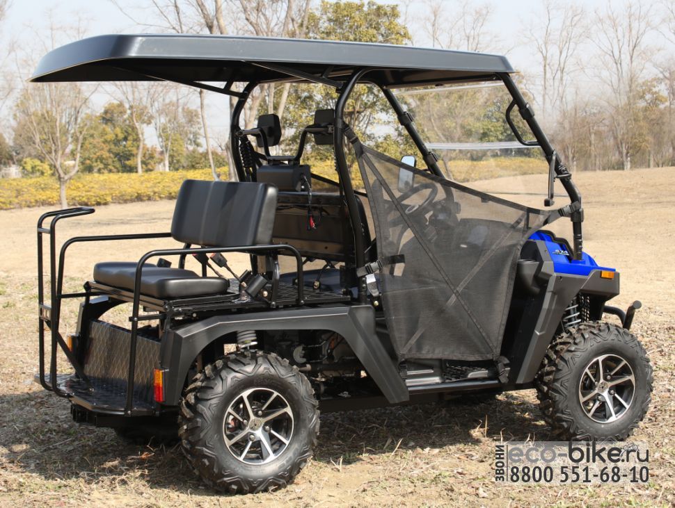 Одной из важных особенностей этого автомобиля - преобразование из UTV в гольфкар. В нем предусмотрена возможность установки заднего ряда сидений и длинной крыши, вместо заднего багажника и короткой крышей. Причем можно как купить дополнительный комплект задних сидений за 50 тыс рублей, так и заменить грузовой комплект на задние сидения на грузовой отсек БЕСПЛАТНО!